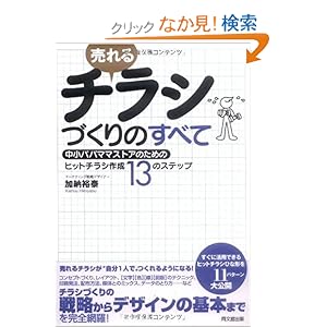 今回の「一瞬で売れる!買わせる!キャッチコピーのつくり方」は2冊目。一昨年には「売れるチラシづくりのすべて」という本も出されていまして、地域密着ビジネスを展開するお店や会社を、強力にバックアップされていらっしゃるとともに、手法の一端を、著作で披露していらっしゃるのです。
