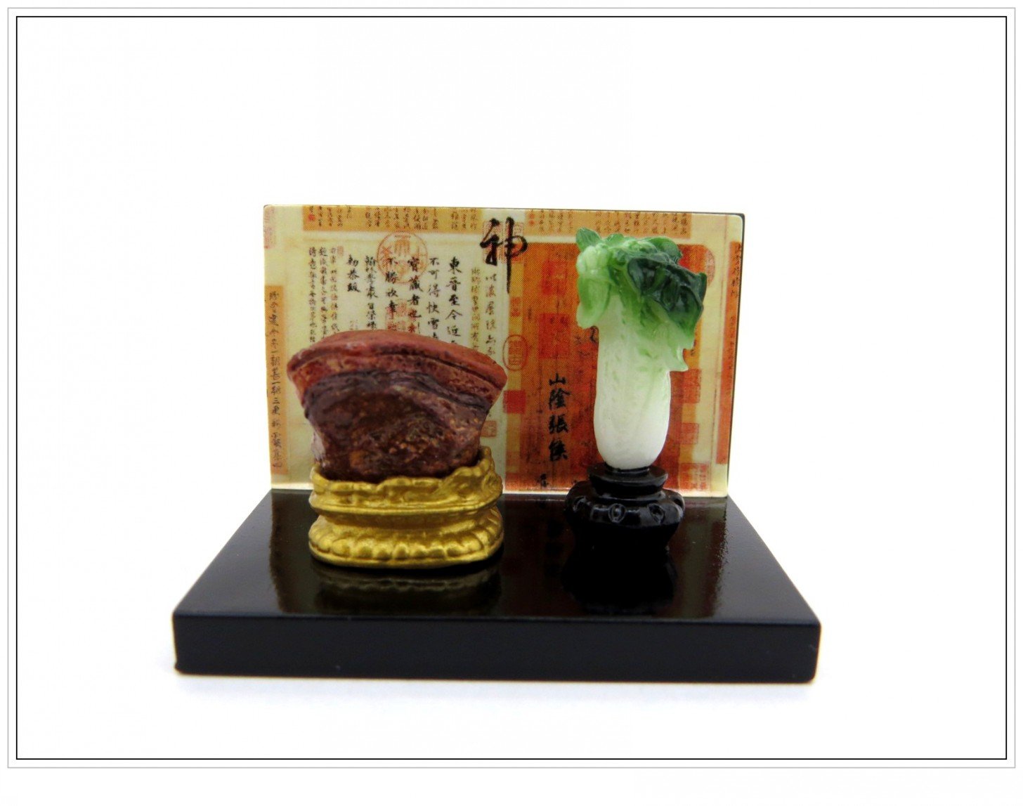 故宮博物院 翠玉白菜 + 肉形石 ミニチュアセット 置物 (背面磁石付)