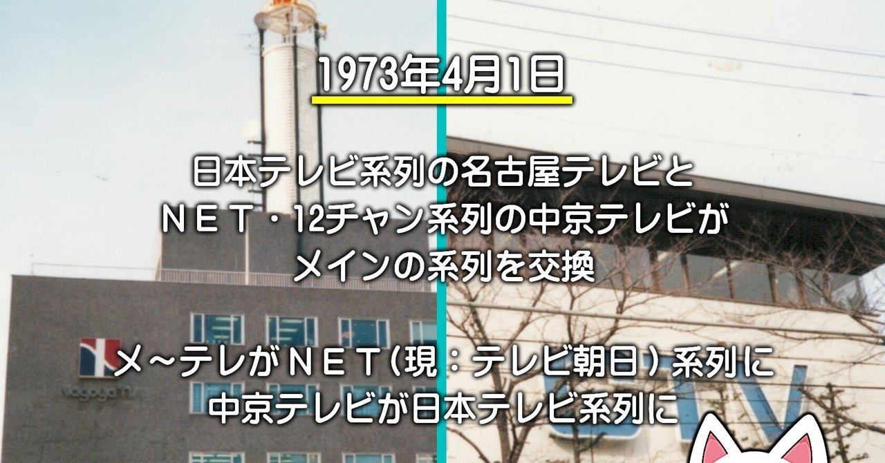 中京テレビは番組系列としてはテレビ朝日、資本としては名古屋財界と日本経済新聞=テレビ東京系列として開局しており、メ~テレが読売新聞資本で日テレ系だったのです。