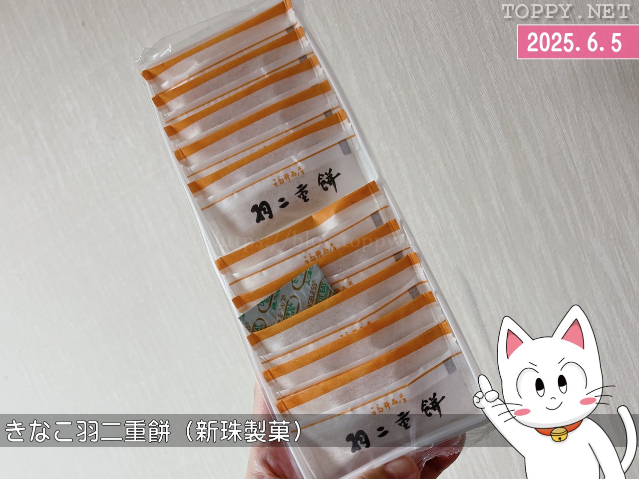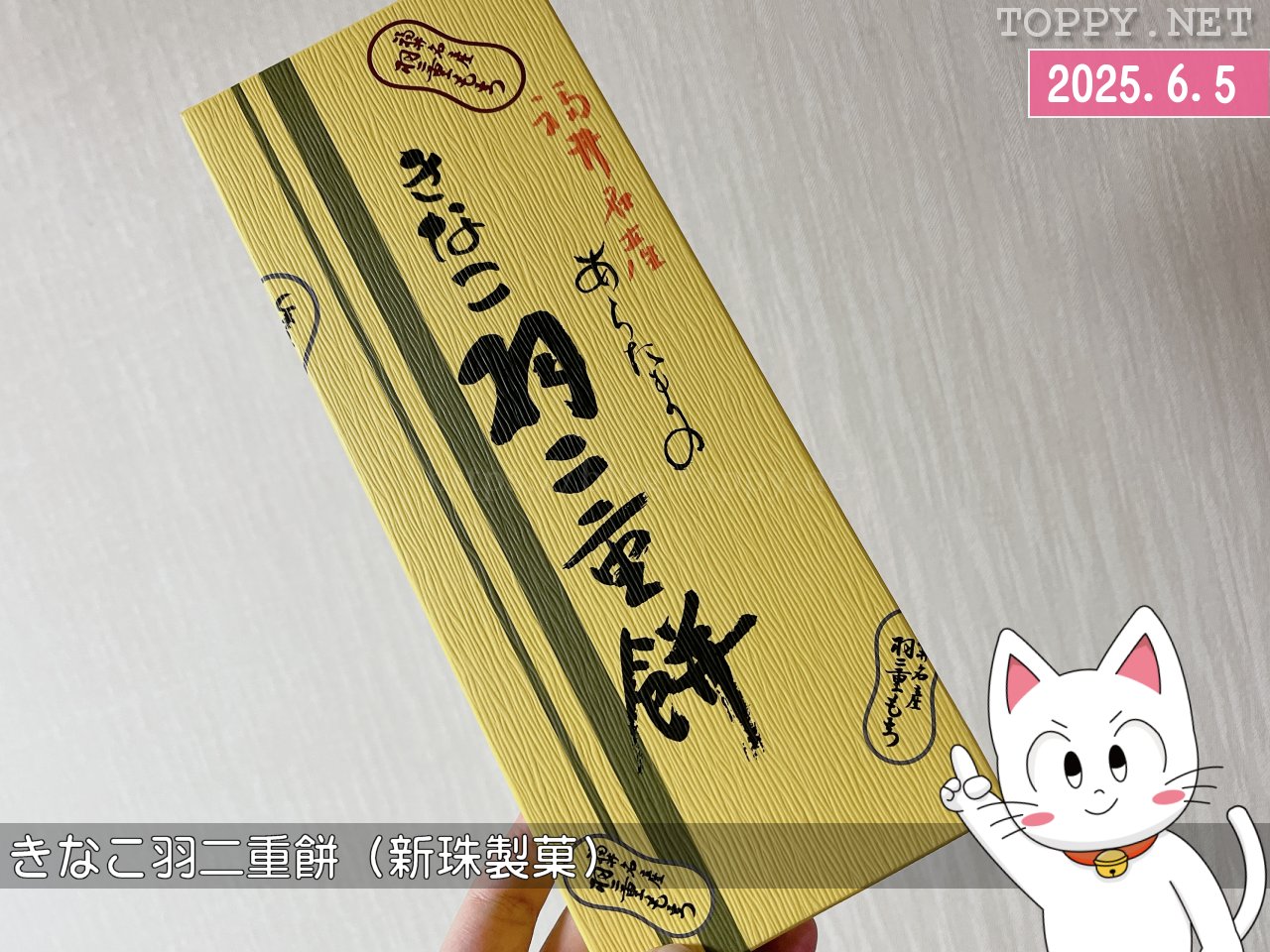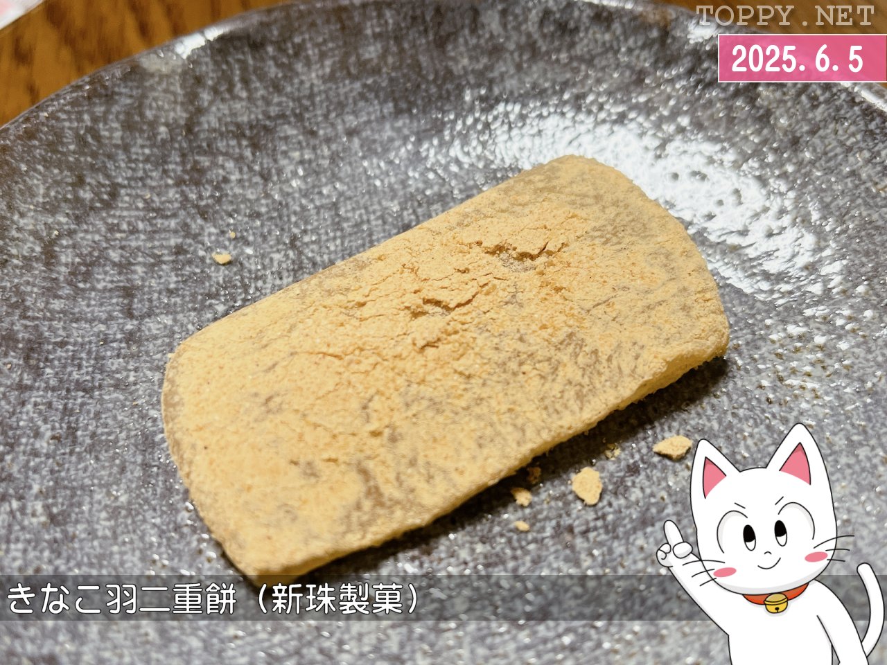 売られていたのは、新珠製菓の「きなこ羽二重餅」です。羽二重餅といえば、もち米と水あめと砂糖を練り上げて作られた、やわらかくて上品なお菓子ですが、新珠製菓の羽二重餅は黒砂糖も練り込まれていてコクがあります。