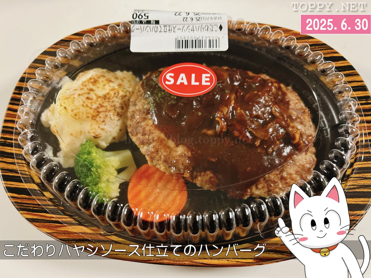 デパ地下で買ったもので夕食!ということで、松坂屋名古屋店にある「eashion松坂屋名古屋店」のこだわりハヤシソース仕立てのハンバーグをいただきました。スーパーだったら「おつとめ品」というシールになりそうなところに「SALE」と貼ってあります。やっぱりデパートは違いますね!?