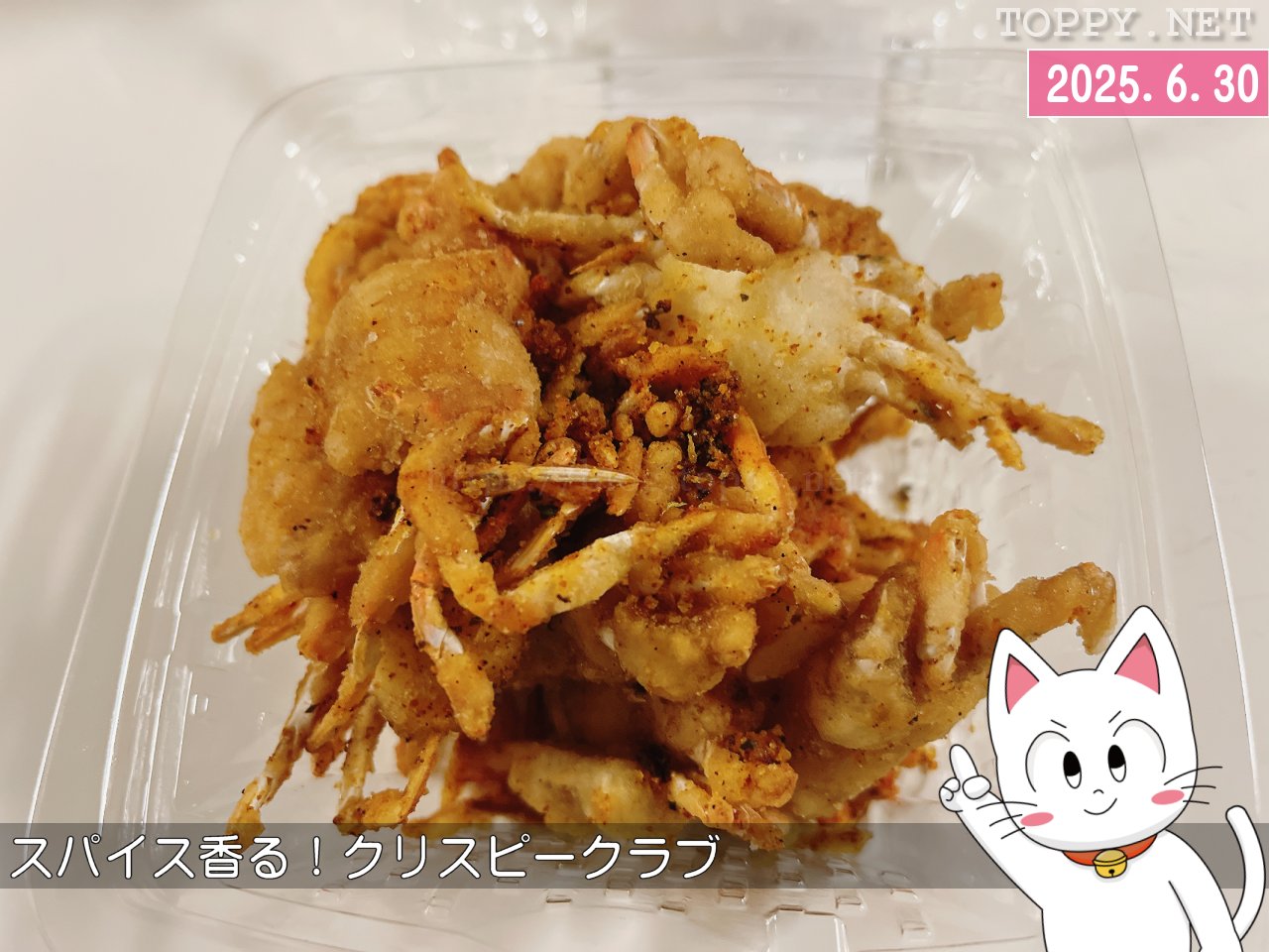 そしてこの店で夕食を買うとなると手が伸びてしまうのが「スパイス香る!クリスピークラブ」です。カニの唐揚げなのですけどこのスパイスが中毒性あるんですよね…!