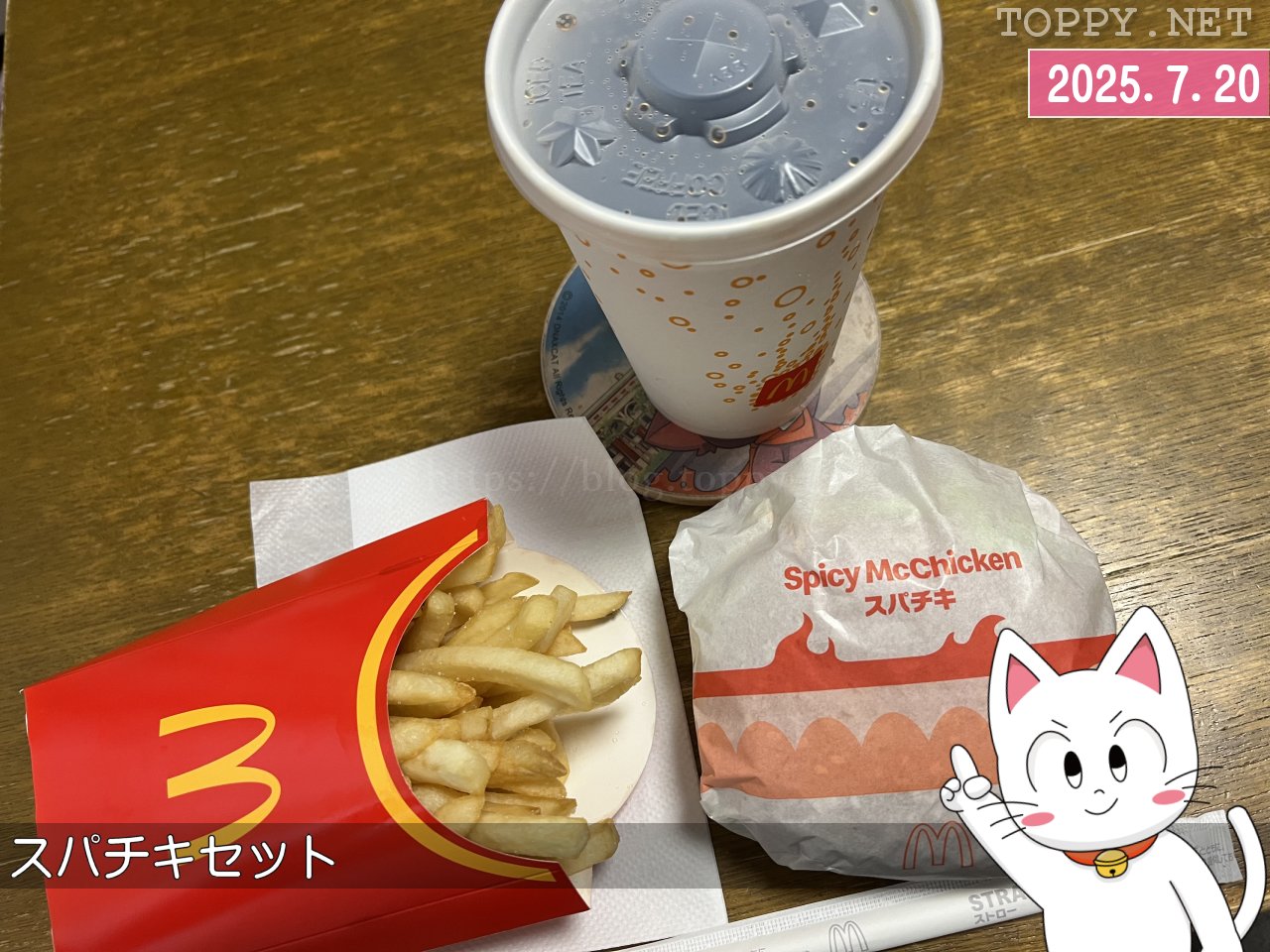 ところでこの「マックフロートブルーハワイ2025」。いったい何の味なんだろう?と思ったら、りんご果汁を使用した爽快感ある味わいの炭酸ドリンクとのこと。りんごなんだ…。ハワイってりんごの産地でしたっけ?まあ売ってはいるようですが…。