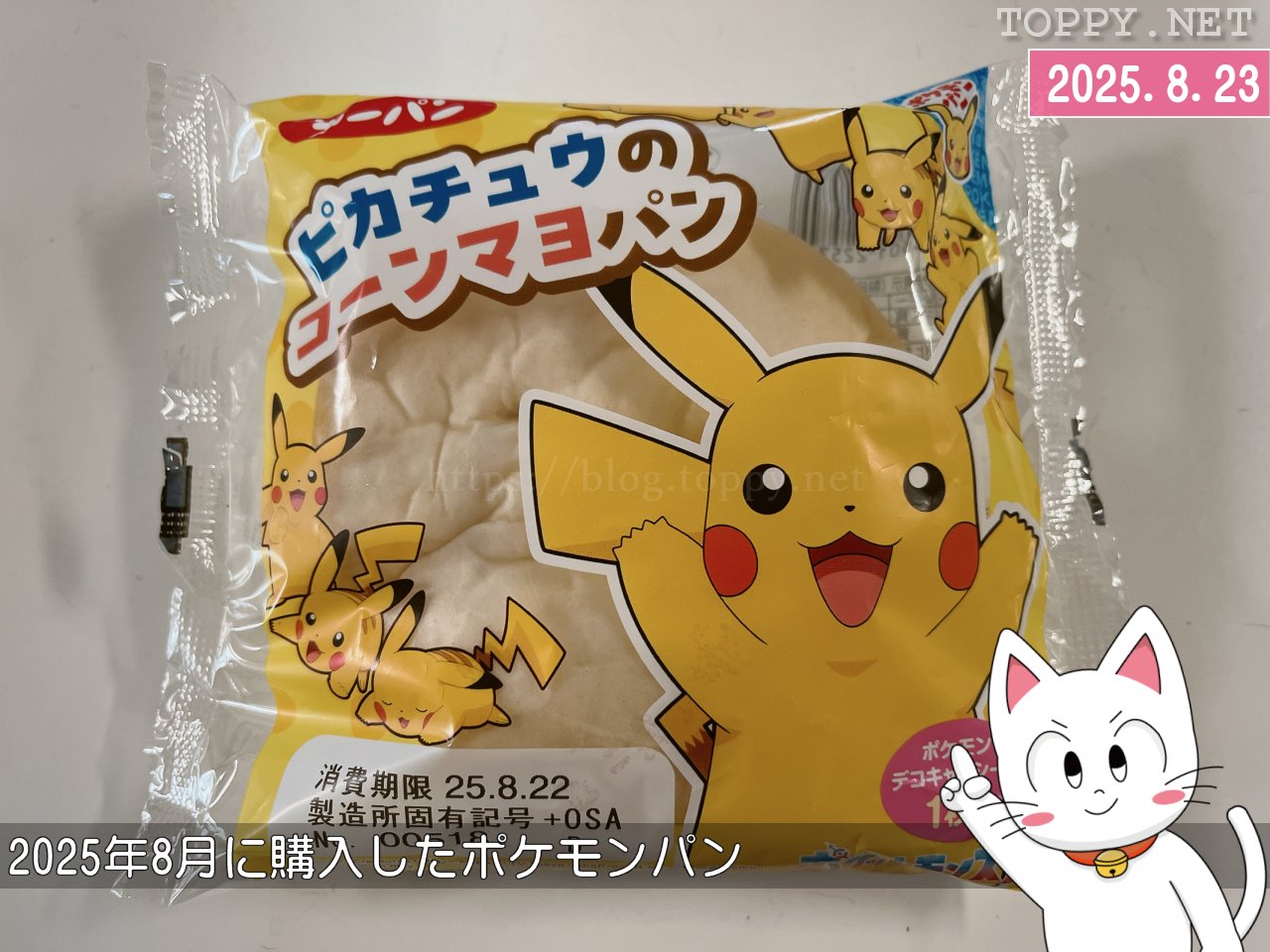 そしてコーンマヨが白パンの生地で包まれているのが「コーンマヨパン」です。ピカチュウがいっぱいのデザインになっています。