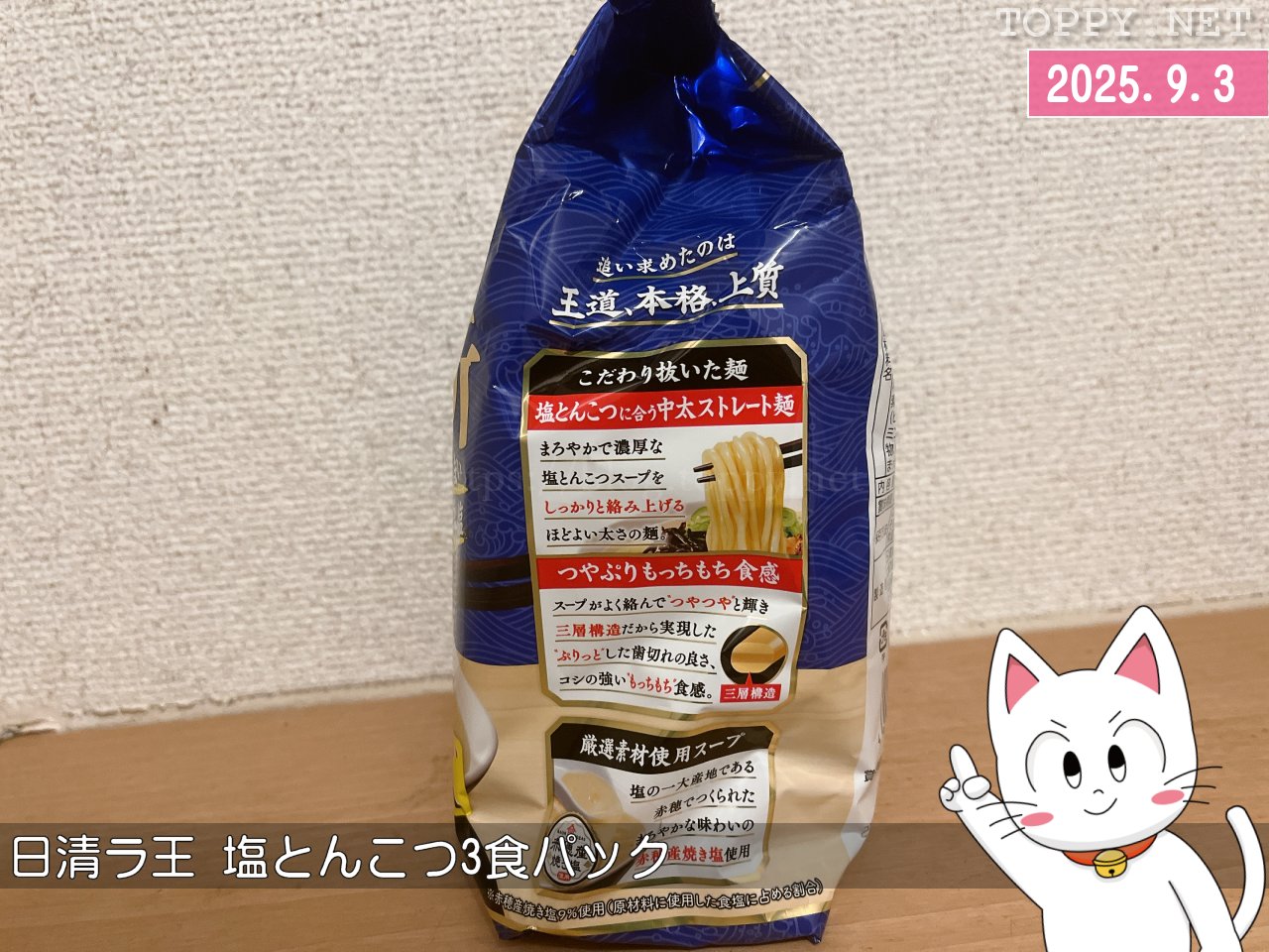 さらに「まろやかな塩」「豚骨の旨味」「赤穂産焼き塩使用」とあり、「追い求めたのは王道、本格、上質」「つやぷりもっちもち麺」と自らハードルを上げていきます。言いたいことたくさんあるのね。
