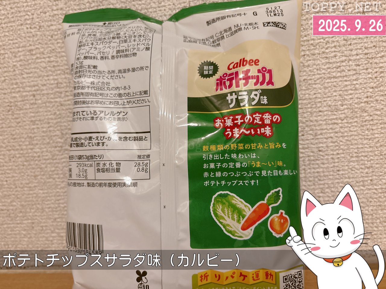 カルビーのポテトチップスはこの9月で「発売50周年」とのこと。年間100種類以上の新商品を発売しているなかで、今回はお菓子の定番フレーバーである「サラダ味」に初挑戦。確かに「フレンチサラダ」はありましたけど「サラダ味」は初めてですね。