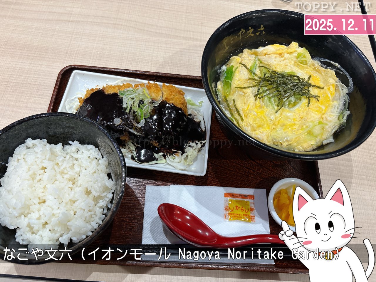出てきたみそカツは…写真よりも色がすごい!これは期待通りのみそカツです。観光客向けとか市販のみそダレのような「遠慮」が一切ない感じ。これぞみそカツ!って感じで最高でした。そして玉子とじきしめんも最高。これから則武イオンに来るたびにこれ一択になる可能性高いよこれ。