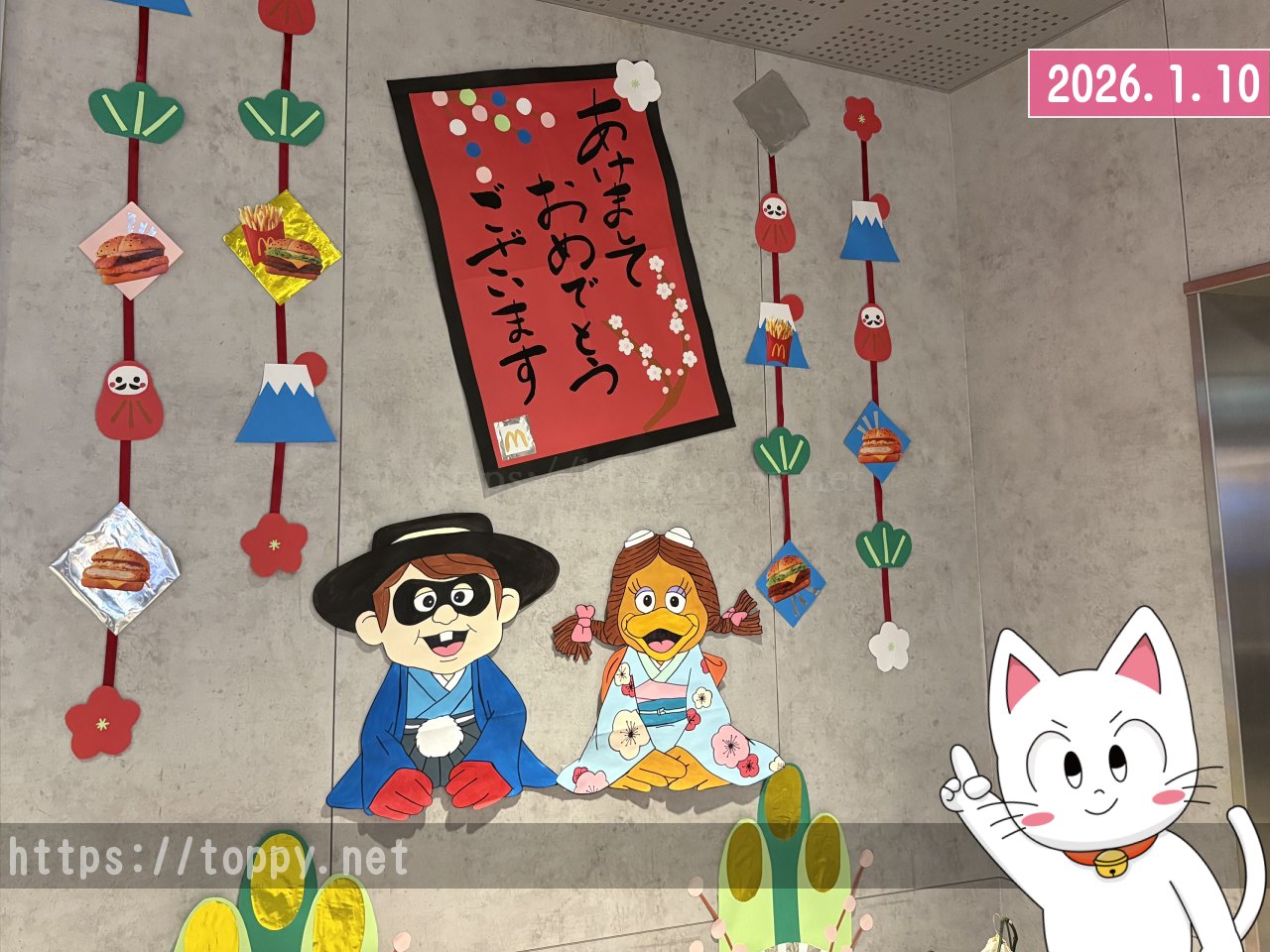 そうそう、このお店はたぶん店員さん手作りの大きなポップがいつも張り出されていて、この時期はお正月仕様の作られていて、バーディとハンバーグラーになってました!